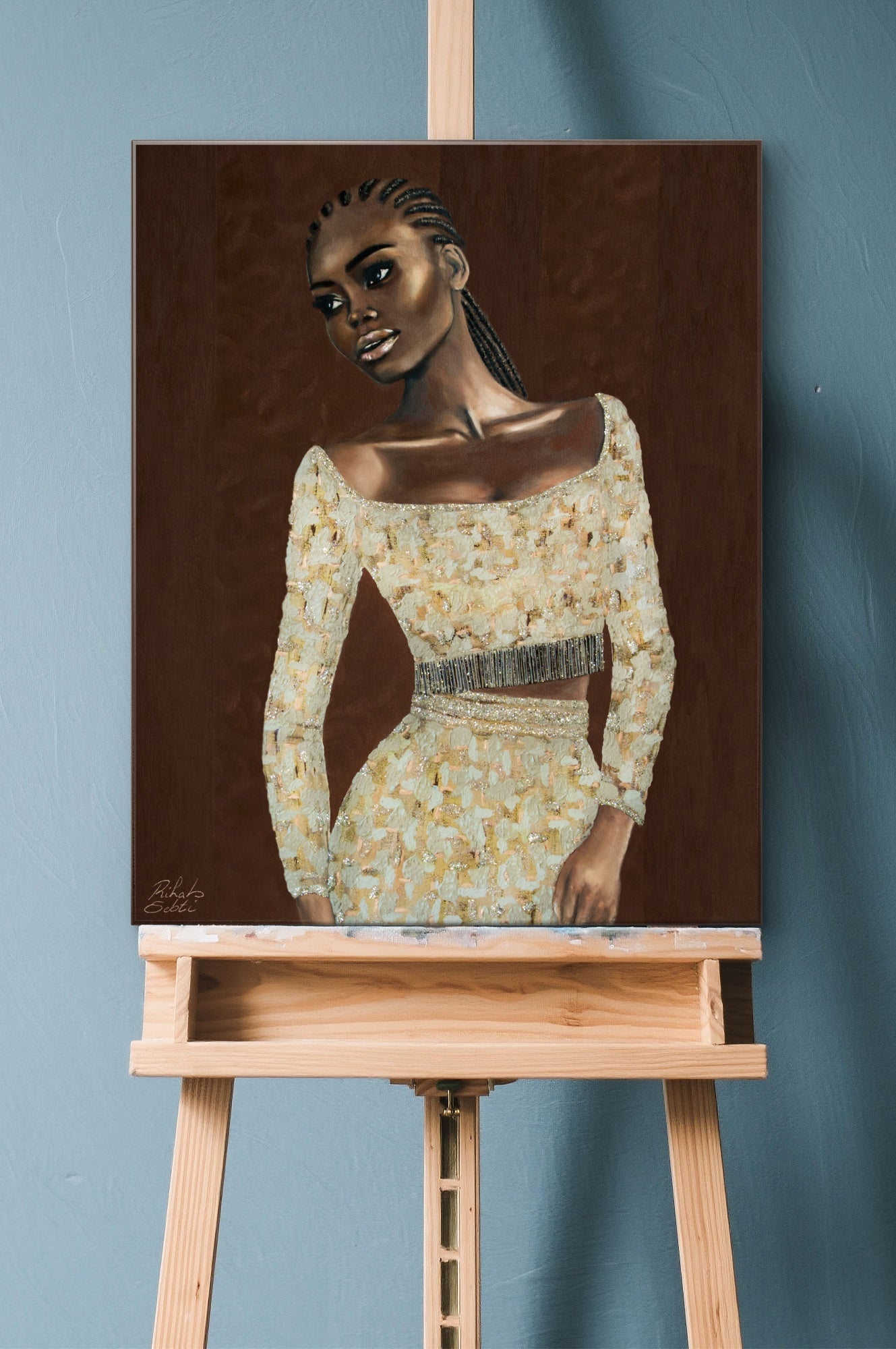 - The original artwork is mounted on a high-quality wooden stretcher frame.
