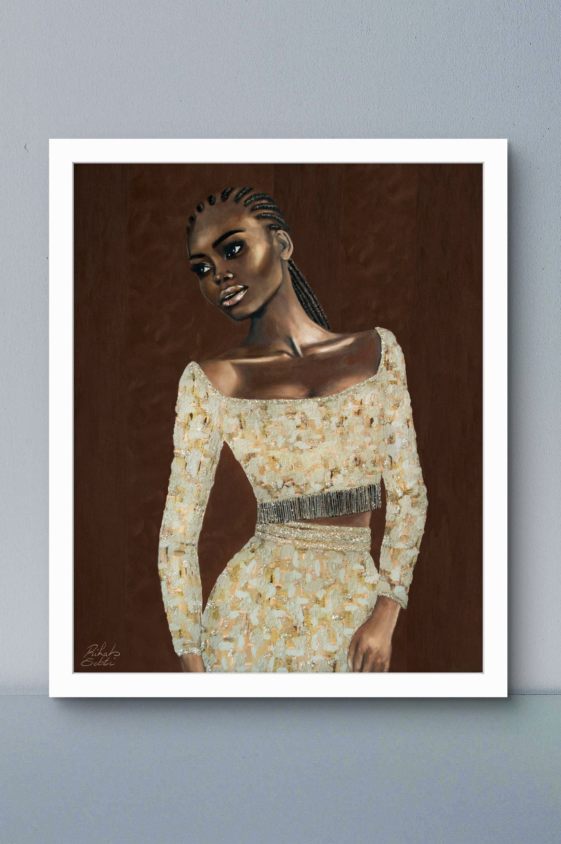 - The prints are embellished and hand-signed by the artist. They are carefully rolled and shipped in a protective tube. Each print matches the dimensions of the original, with an added white border to allow for stretching on a frame.